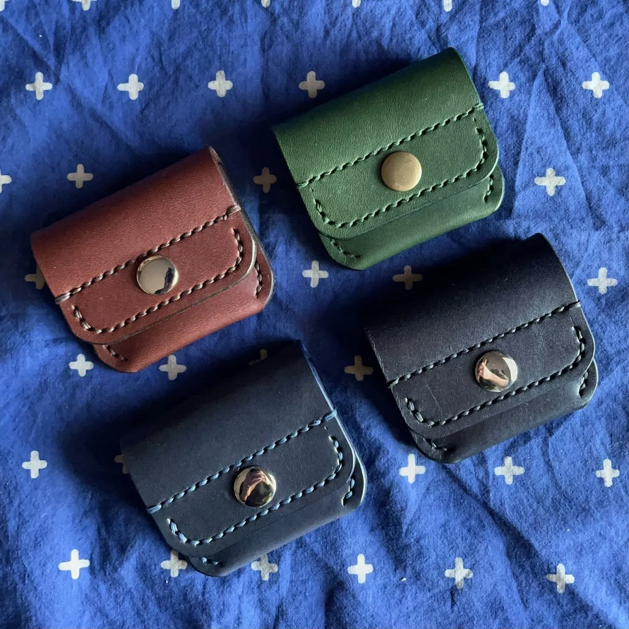 Everything I make is made by hand, from cutting and shaping the pieces, punching every stitch-hole, and threading every stitch.